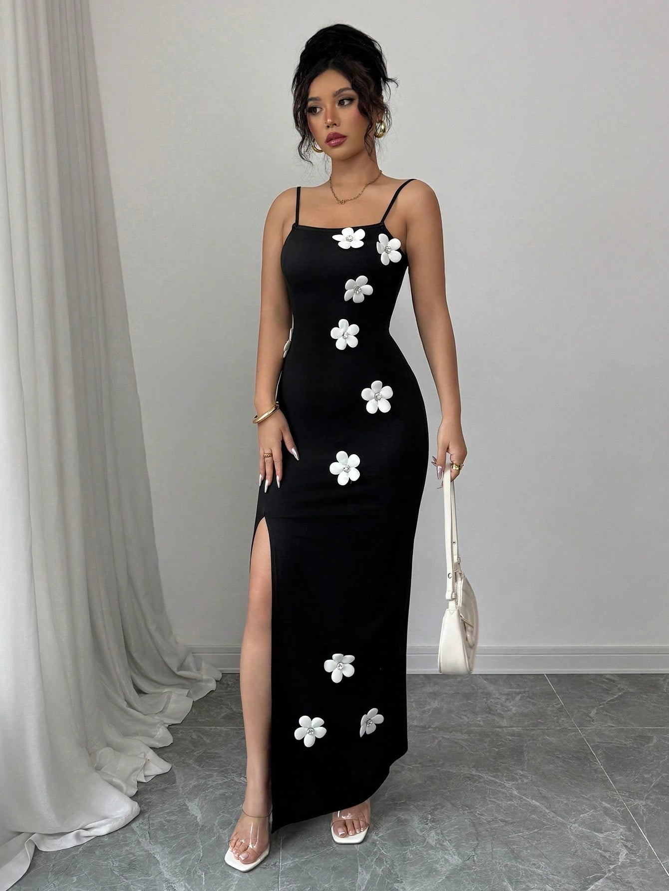 Details: Appliques, Zipper, High Opening